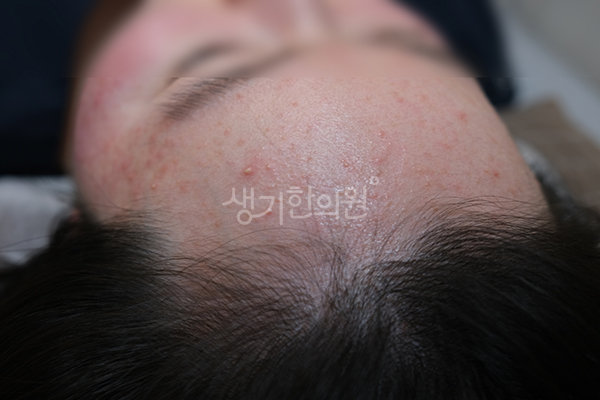 치료 중 경과 : 얼굴의 붉은기부터 사라지기 시작.