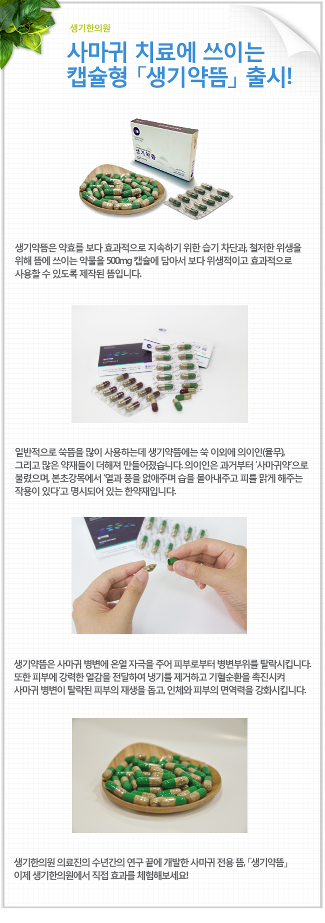 생기한의원이 사마귀 전용 뜸 「생기약뜸」을 출시하였습니다.
